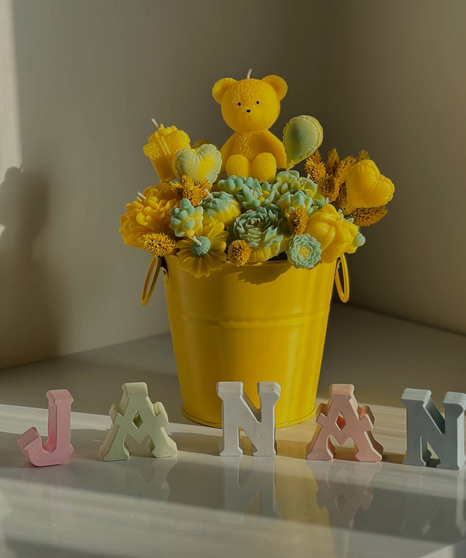 باکس گل شمعی سطلی خرسی